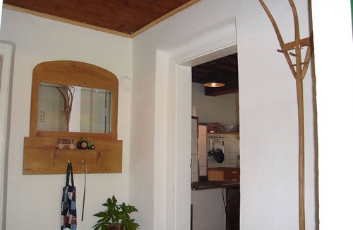 The "Waldweber" is a 4-room house with an area of 85 square meters, situated on the ground floor. It has been renovated and features rustic and cozy furnishings. The layout consists of a small walk-through room without a wardrobe, equipped with one bed and a shower/WC. There is another walk-through room with two beds, a satellite TV, and a wood-burning stove. Additionally, there is a room without a wardrobe that has one French bed (180 cm). The kitchen/living room area includes an oven, a dishwasher, four ceramic glass hob hotplates, an electric coffee machine, a dining table, and a dining nook. The house has electric heating, wooden floors, and natural stone floors.