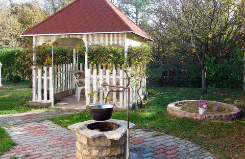 Marcali, Hungary. House "Boros" is a detached vacation rental offering a private and peaceful retreat. The property boasts a spacious 400 m2 fenced yard with a lush lawn, shady trees, and an arbour perfect for al fresco dining. Enjoy the convenience of on-site amenities like garden furniture, a barbecue, and a cozy fireplace. With parking available for up to 3 cars, Internet Wi-Fi, and bicycles provided, you can explore the surroundings with ease.