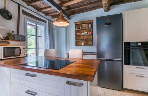 The property features a central heating system available from November 1 to April 7. Access to the house requires traversing a narrow motor road for the last kilometer. Parking is conveniently available on the premises. Grocery stores are located 1.4 kilometers away, while a supermarket is within a 10-kilometer radius. For those seeking sandy beach experiences, the "Versilia" beach is approximately 64 kilometers away, and the thermal baths of "Montecatini Terme" are just 21 kilometers from the property.