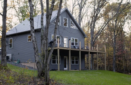 Welcome to our beautiful piece of the Northwoods! Come stay at this brand new, built in 2017 cabin on a 6 acre wooded lot located on a private drive. This 2300 square foot home features 4 bedrooms, two bathroom, family room, and a huge loft to accommodate up to 14 adults. The Master Bedroom features a king size bed, while the bedrooms 2, 3 and 4 have a queen beds. Moving up to the loft, you find 3 more queen beds for your comfort. The kitchen has stainless steel appliances (fridge, stove, microwave AND a dishwasher), plenty of counter space for all the necessities of your cooking, with lots of room at the dining table to eat, entertain, play board games, dice, or cards.