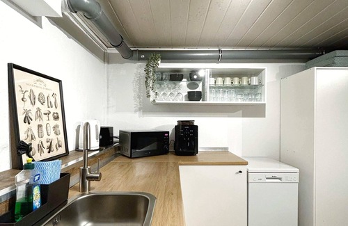 This spacious 1 bedroom apartment close is located in Hamburg's urban district Wandsbek. Freshly renovated this year, the 52 m² apartment has enough place for 12 guests to sleep. The apartment offers a living area with loft bed, a fully equipped kitchenette, dining area and a large pull-out sofa. The bathroom offers a shower and a toilet. Get ready for a truly Hamburg experience with good connection to the city center in a residential area of Hamburg?