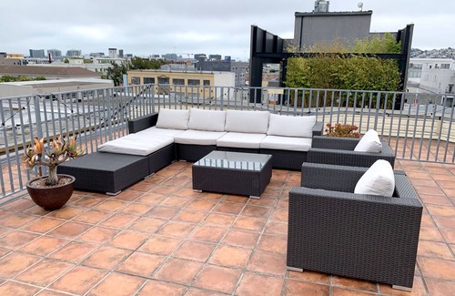 Beautiful & Sunny 2 Bedroom Apartment - w/Private Parking, Roof Deck, Laundry! is located in South of Market. Beautiful & Sunny 2 Bedroom Apartment - w/Private Parking, Roof Deck, Laundry! provides accommodation, featuring TV, Wellness Facilities, Barbecue/Outdoor Cooking, among other amenities. This Condo features TV, Wellness Facilities, Barbecue/Outdoor Cooking, to make your stay a comfortable one.