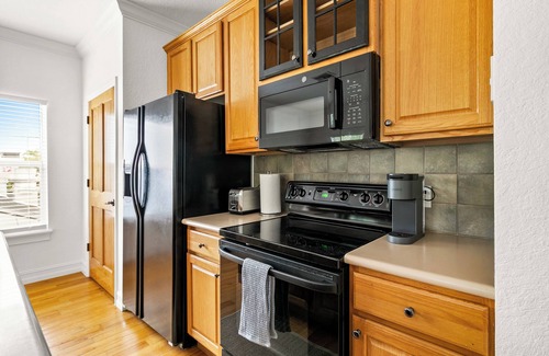 Designed with comfort and convenience in mind, the space features two private entrances, a full kitchen, a convenient kitchenette, and a washer and dryer ideal for longer stays or groups traveling together!