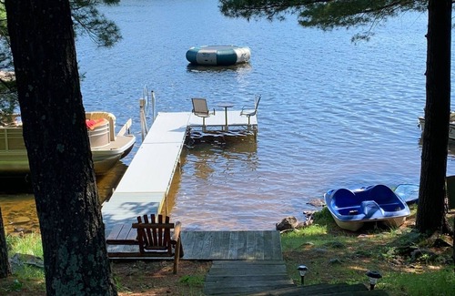 Fire pit and inside fireplace add to the ambiance. Large screen porch is a great place to relax and listen to the loons and watch the humming birds.