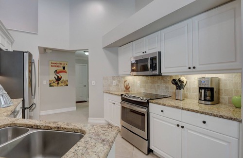 You’ll love the chef's kitchen, with high-end appliances, plenty of counter space, and everything that you need to prepare a family meal. When it’s time to serve a meal, there’s a dining room, a breakfast nook, and seating at the bar or the enclosed lanai. There are 3 seating areas inside - a formal living room, a cozy den/TV room (both with big flat screen TVs), and the lanai (which is fully under AC). The pool deck features a large dining table, or you can also relax on one of the lounges by your private heated pool while the grill master cooks up something delicious on gas grill. After a day at the pool or the beach, you can relax on one of the couches in front of the three large HD TVs (with cable and WiFi) and enjoy a drink or two.