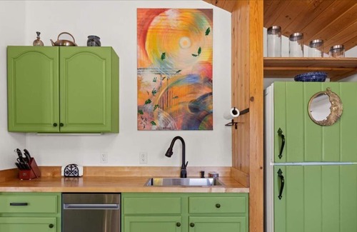 Richly decorated with original artwork, stained glass, all new furnishings and fixtures, this two level duplex-apartment is the perfect home-base for your next stay in the Bitterroot Valley. Private parking and entrance, washer/dryer, full kitchen, barbecue grill, spacious living and dining area with work desk, sleeper sofa, smart TV on the main level while upstairs you'll find a new king size bed, closet, dresser and stunning views from the intimate upstairs deck off the bedroom. The Sapphire Unit is equipped with high speed internet, radiant floor heat, a gas fireplace, and mini-split AC/heat on each level. Straw-bale construction of this building affords ultimate insulation and sound proofing, there are no shared walls, parking, or entrances with of the other apartment of the duplex, the Bitterroot Unit.