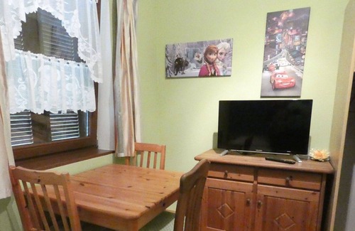 Child friendly resort "Ferienpark Falkenstein", surrounded by trees and meadows. On the outskirts, 1.5 km from the centre of Falkenstein, in a quiet, sunny, elevated position on a slope, 50 m from the edge of the forest, 3 km from the skiing area. For shared use: children's playground (slide, swing, sandbox). In the complex: sauna (extra). Solarium (extra). Relaxation room, table tennis, kiosk, central heating system. Central parking spaces. Supermarket 500 m, restaurant 1 km, bakery 1 km, café 1 km, bus stop 1 km, outdoor swimming pool 250 m. Walking paths from the house 20 m, ski lift 3 km, slopes 3 km, cross country ski track 25 m. Nearby attractions: Burg Falkenstein. Well-known ski regions can easily be reached: Falkenstein 3 km. Hiking paths: Falkensteiner Panoramaweg. Please note: car recommended. Loading and unloading of baggage is possible at the holiday house. The owner doesn't accept company bookings.