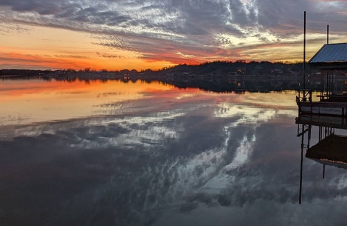 BOAT DOCK: Fully covered boat dock for swimming & fishing. Boat dock has seating to enjoy the lake views & ladder for lake access. You will NOT have access to the jet skis and NO watercraft can be tied to the boat dock.