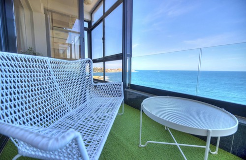 This enormous 4 bedroom, designer finished apartment will amaze you in every way. It is perfectly located in the heart of Sliema, right on the seafront promenade. It is steps away from many sought-after restaurants, bars and from Malta's bigger shopping mall, Tigne Point. As soon as you walk into the apartment, you will be stunned by the amazing sea views. Due to the large glass windows, you will feel as if you are floating on the sea. The apartment is extremely spacious and comprises of 4 bedrooms, each uniquely and tastefully decorated. The twin room is fun and elegant whilst the double room is cosy and sophisticated. The main bedroom is very large, beautifully finished with mouldings on the walls and has its own ensuite bathroom. The study room can be converted into a 4th bedroom as it has a very comfortable sofa bed with a thick mattress. The main bathroom is spacious and has a bathtub, his & her sinks and 2 modern mirrors. It also has a washing machine and a tumble dryer.The kitchen has been decorated with style and is fully equipped, including a coffee machine, toaster and dishwasher. The open space is massive and has unbeatable views. It has a large dining table which can seat 8 people. The very large sofa is the perfect place to unwind and enjoy the sea views. You will also find a fake fire place which gives a cosy feeling to the space. Another highlight of the property is the indoor balcony, with its hanging plants, where you will feel right in the sea. The apartment also has an outdoor balcony with outdoor furniture.This property has been designed with style and class all throughout and is very unique. It is the perfect place for holiday makers and for a relaxing break. Fresh bed linen, towels and Wi-Fi are provided upon arrival.