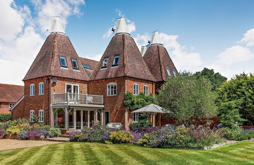 We welcome you to Bedgebury Oast (sleeps 10 with a max of 8 adults) - an original Oast house with 5 bedrooms, 3 bathrooms, terraces, patios, views, 2.5 acres of land, parking for 4 / 5 cars.