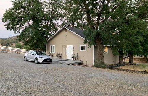 Forget the daily schedules and deadline and reconnect with your wild side in Hornbrook! This bedroom and private bath features comfortable furnishings and a full access to equipped kitchen to return to after days spent in the wilderness. An outdoor haven exists right outside your door, where you can grill up fresh-caught fish or sit around a campfire at night under unobscured starry skies. If you start to crave city streets and attractions, visit Ashland just 29 miles from this cottage!