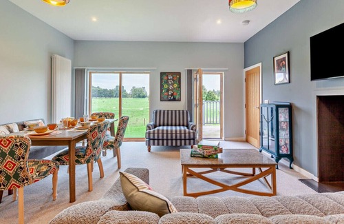 Head up the external staircase to the entrance on the first floor of the building. Once inside you'll be met with a welcoming hallway, with plenty of room to leave your coats and shoes, plus a separate WC leading off it. Just next door is a fabulous open-plan living space, cleverly divided to create a generous well equipped kitchen area, a lounge with comfortable seating, Smart TV and wood burner, plus a dining space opposite. This room is light and bright thanks to the full height windows and door leading onto the balcony that spans the rear of the property. Also on this floor are two of the three bedrooms, a super-king-size with an en-suite shower room, and a super-king-size zip-and-link that can be converted into twin beds if required. The contemporary bathroom is next door. Across the lounge you'll find stairs rising into the eaves, where the final bedroom is located, a super-king-size zip-and-link that can also be converted into twin beds. This spacious room has dual aspect Velux windows from which to admire the views and a sofa bed, ideal for an extra guest and available on request.