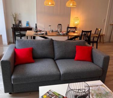 Housed in a historic building, Bel appartement T3 au 1er étage avec cour intérieure au RDC - Villa Marie features accommodations with a terrace and free Wifi in Luchon, 8.9 miles from Col de Peyresourde. The apartment, set in a building dating from 19th century, is 29 miles from Col d'Aspin and a 15-minute walk from Luchon Golf Course. Lake d'Oô is 8.9 miles away and Saint-Lary-Soulan is 27 miles from the apartment. Featuring a balcony and city views, the spacious apartment includes 2 bedrooms, a living room, flat-screen TV, an equipped kitchen, and 1 bathroom with a shower. This apartment also includes a patio that doubles up as an outdoor dining area. The accommodation is non-smoking. Guests at the apartment will be able to enjoy activities in and around Luchon, like cycling, fishing, and hiking. Walking tours can be enjoyed nearby. Tarbes Lourdes Pyrénées Airport is 64 miles from the property.