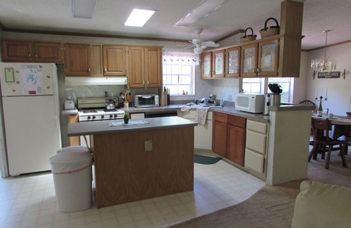 Our home is a large ranch home on 3 acres of land. It has an open layout, vaulted ceilings, and features 3 bedrooms, 2 full baths (one is a master), eat-in kitchen, dining room, living room, family room , screened porch, and deck. It is the perfect family vacation home! There is driveway parking for 2+ cars. A canoe and a few life jackets are provided but feel free to bring floats, kayaks, etc. Powerboats can be accommodated but require additional discussion with owner.