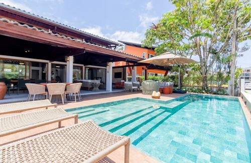 Nestled in Ipojuca, this 6-bedroom, 5.5-bathroom vacation home brings it all within your reach. Fans of nature and the outdoors will love being 19 minutes by car from Muro Alto Beach and 16 minutes from Maracaipe Beach. If you'd like to explore the area, you can make the 18-minute drive to Porto de Galinhas Beach or the 14-minute drive to Cupe Beach.