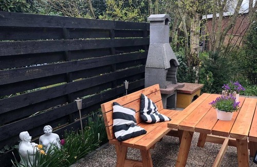 The living room has a dining area and a cosy seating area with television (with cable connection for German and Dutch channels). The holiday home is heated by central heating. Stairs lead from the living room to the 1st floor. The sliding doors in the living room lead to the spacious and enclosed back garden.