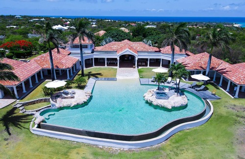 Outdoor Oasis: The villa's exterior is a haven of tranquility and outdoor living. You'll have access to the stunning beach-style infinity pool, complete with a jacuzzi island, as well as the terracotta-tiled terrace for sunbathing and outdoor dining. The grand terrace provides shaded areas to escape the Caribbean sun, while the pool table and Koi fish pond offer additional entertainment options.