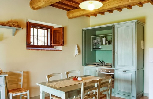 Located in Anghiari, this is a delightful 1-bedroom holiday home with a shared swimming pool and a terrace. The holiday home can host 5 people. It is perfect for small families or groups.The nearest restaurants are 4 km while supermarkets are 8 km from the holiday home. You can visit the famous town of Caprese Michelangelo, named after the famous artist Michelangelo, 10 km away. Sansepolcro, the lovely stone city is 15 km away and worth a visit.The holiday home is decorated in the charming Tuscan style, making use of traditional local furnishings and textiles. There is a double sofa bed in the living room beside the double bed in the bedroom. In the evenings, you can linger at the terrace and enjoy a delicious snack, a glass of wine, or sip a good coffee. You have extensive shared gardens to make the stay pleasant. A children's bed and a high chair can be requested for free. You can park your car here.The nearest airport lies at 85 km.