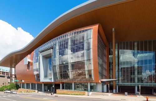 Stay in incredible comfort in Historic Nashville, in a hotel made entirely for relaxation! This hotel will greet you with valet parking and ensure your comfort in luxury bedding and roomy suites, and four room styles for accessibility. With clean gathering areas throughout the hotel and a gleaming skyline-view pool just off the rooftop terrace, this music-themed hotel is ready to welcome families and dogs for the length of your stay! Located centrally to Nashville’s most popular attractions (only a short walk to Nissan Stadium and Nashville’s Broadway entertainment district) and just 20 minutes from the airport, this incredible hotel is a sure-fire way to rest and relaxation, just ask Jimmy Buffet!