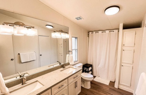 Our home has an open living area and comfortable seating for your group to gather. The dining room will seat 8 people, with additional seating for 2 at the bar. Or, take your meal outside to one of the decks with fabulous views of Lake Bridgeport. We also have an open kitchen with quartz countertops, all new appliances and everything you need to fix and serve meals for your group. The shop has been converted to a fabulous entertainment room with pool table and other gaming, as well as entertainment center with 75" TV.