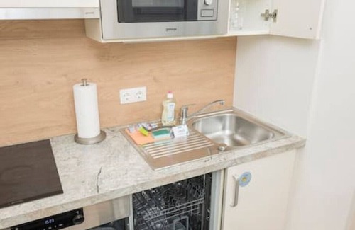 The 34 m² apartment can accommodate up to 3 people in the double bed in the bedroom and on the sofa bed in the living area. In the fully equipped kitchen, you can enjoy a homemade breakfast in the morning before spending the day in meetings or sightseeing. A washing machine is available in the apartment and you will also find an iron if you need to iron creased clothes from your trip. Wi-Fi is available throughout the apartment free of charge.