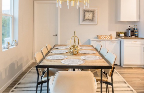 Welcome to Casa Vibiana! Where you’ll enjoy the best desert + mountain views in all of Coachella Valley. Just 15 minutes from downtown Palm Springs + 30 minutes from Joshua Tree, you are centrally located to shop, hike + vacation. This smart home will ensure you have the best experience while taking in the tranquility of the desert vibes during the day + under the beautiful stars at night. This home is ready to welcome + ensure you have the best photos for your family + friends to admire. The main bedroom has a 7’ soaker tub perfect for two. Take a dip in the picturesque geometric tile pool + jacuzzi or enjoy the 5’ fire feature from the jacuzzi or outdoor seating area. You deserve to live your best life even if you have to do a little remote work when you stay here (yes we have a printer + paper for you too.) The home features a water softener system + an alkaline water faucet in the kitchen. Each room is equipped with a Sonos ERA 100 speaker to play your favorite tunes.