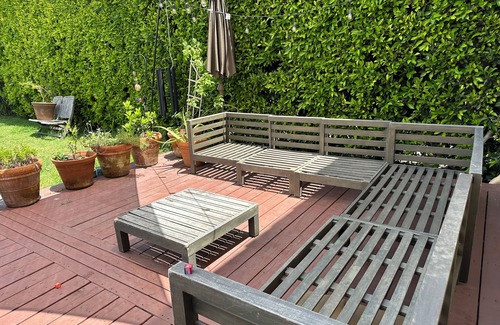 Enjoy a peaceful stay at this spacious 3-bedroom, 2 Bath house in Los Angeles. Sleeps up to 12. Huge yard with pool table, bbq and lounging areas, guests will feel right at home. Hardwood floors. New Washer/Dryer. AC