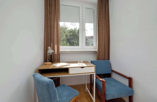 The spacious and functional interior, ideal for parents traveling with children, makes this apartment in Wrocław for 5 people an excellent choice for both short and long trips. People working remotely can use the desk here.