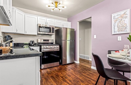 Escape to our charming 3-bedroom, 1-bathroom home just outside Detroit, nestled in a peaceful neighborhood. Ideal for small families seeking comfort and convenience, each bedroom offers cozy beds and ample closet space for a restful night's sleep. The bathroom features a shower/tub combo, and we provide all the towels and toiletries you need.