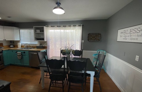 Big Oak Lodge- 3 miles from Lake Chickamauga & Chester Frost Park. Boat trailers welcome. Sleeps 8 guests, 4 beds/2.5 baths, large recreation/game room with air hockey, foosball, XBox, and games; fire pit with nighttime lighting, Adirondack chairs, and complimentary firewood; gas grill; covered deck with 4 rocking chairs; walking track and outdoor basketball across street (we provide the balls); walk to Food City grocery store, 7 restaurants, smoothie shop, and nail salon. Beautiful view of Signal and Mowbray Mountains from the front porch.