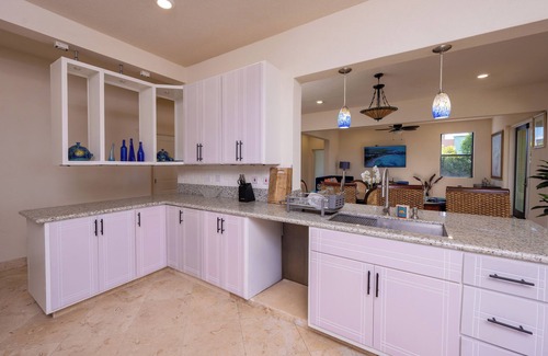When it's time to rest there are two bedrooms and two bathrooms on the ground floor with one king bed and one with a queen bed. Each bedroom has air conditioning and ceiling fans and the queen bedroom also has a TV and private patio with sun loungers. On the second floor there are three additional bedrooms and two bathrooms all with king beds. The second floor has its own living room/game room with couches, a pool table, piano and television. There is a 16 foot patio door that opens all the way up so you can enjoy the outdoor patio and sun loungers with absolutely beautiful views of the ocean and a different sunset every evening. There are plenty of places to read and relax with access to two additional patios with amazing ocean views of the south coast.