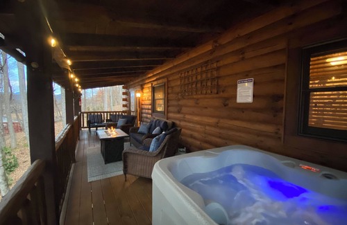 Black Bear Cabin is a 3-level log cabin large enough for 2 to 3 families to gather for that unforgettable vacation. (If you need some extra room, please ask about our second cabin right next-door that sleeps 10 guests.) Enjoy the large front porch with swing and rocking chairs or the covered back porch with comfortable seating around a beautiful cozy fire pit table (propane). Take a relaxing soak in the hot tub after a long day of hiking to see the local waterfalls. Cook s'mores at the firepit just off the stone patio, or play a game of corn hole. Inside, enjoy the cozy gas fireplace or play bumper pool & other games. Ask about cabin right next door, Red Wolf Cabin, available for rent with this cabin.