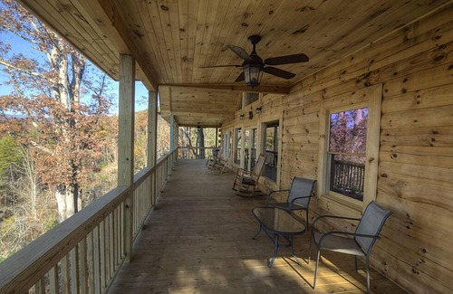 Black Bear Lodge is all about the location. Conveniently located to all the attractions. The great smoky national park entrance, Tubing Deep Creek and train depot are each only 1-mile away. The panoramic views from the wrap around porch are breath taking. Most activities are very close by: