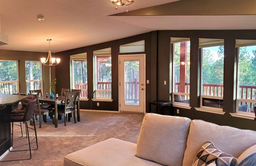 Welcome to Black Forest Chalet -- a serene and inviting cabin/chalet tucked away in the woodlands of Black Forest. Featuring an outside 4-person hot tub, a huge kitchen stocked with pots and pans, regular coffee maker and Keurig coffee maker, three bedrooms (two queen beds and one king), master bedroom suite with attached bathroom --including a jetted bathtub -- two smart TVs, and tasteful decorations and design, this forest cabin offers the true Colorado experience with plenty of amenities.