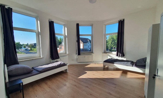 The flat has 4 rooms and is furnished with 10 comfortable single beds, wardrobes, chairs and table, W-Lan and TV.