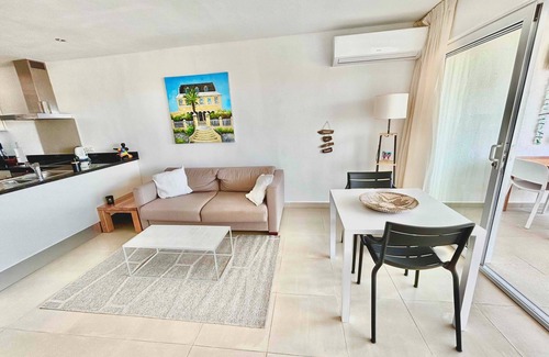 Our lovely apartment is located on the third floor of the small-scale Blue Bay Triple Tree resort. The apartment has a balcony with a fantastic view of the ocean and the golf course. In the afternoon, you can enjoy the sunset. The terrace offers a lot of privacy.