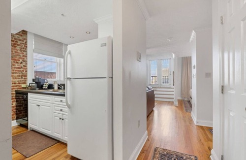 Welcome to Blue Bella, a charming 1-bedroom loft in the heart of downtown Maryville, located above Bella Restaurant. Perfect for business travelers or couples, it features a king bed, full kitchen, and a private rooftop patio with city views. The loft is accessed via a secure stairwell with no elevator, and free parking is available across the street. Enjoy the vibrant downtown atmosphere with restaurants and shops nearby. Sound machine and blackout curtains provided for your comfort.