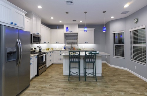 Blue Crab Cove is the perfect home for outdoor gatherings with friends and family. The large, fenced backyard and covered patio have two picnic tables set up, the perfect area to unwind for seafood boils, or grilling out! The boat dock offers a kayak launch area, underwater green light, and access to crab traps to catch the many blue crabs in the canal! New overhead green light installed June 2024. There is also an outdoor sun shower. If you are adventurous, you can climb up to the rooftop deck, complete with safety rails and patio chairs. This area offers the most amazing views of the water in every direction, perfect for early morning coffee while watching the sunrise, or tropical cocktails during the sunset.
