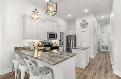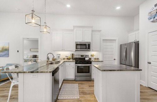 Enjoy one level open floor plan living in this spacious 3 bed 2 bath (1700 sq. feet) coastal cottage. Take your morning coffee on the front or back porch or fire up the grill for a homemade dinner. Then enjoy your evening relaxing in our hot tub, lounging in the hammock or chatting around the fire pit. The kitchen is fully stocked with cooking essentials, large fridge and freezer, and gas range.