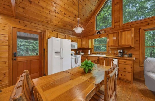 Welcome to your peaceful escape in the Blue Ridge Mountains! This cozy 3-bedroom, 3-bath log cabin is tucked away among tall pines and hardwoods, offering total privacy and a perfect blend of rustic charm and modern convenience.