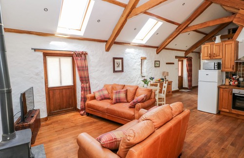 Blueberry Cottage is an attractive single-storey barn conversion resting in Haverfordwest, Pembrokeshire. Hosting two bedrooms including a king-size with en-suite shower room and a twin, along with a bathroom, this property can sleep up to four guests. There is also an open-plan living space with a kitchen, dining area and sitting area with woodburning stove. Outside, there is off-road parking for two cars and a garden with a patio and furniture. Blueberry Cottage is the perfect dwelling for a relaxing retreat to South Wales. Please note the property accepts a minimum of 3 night stay