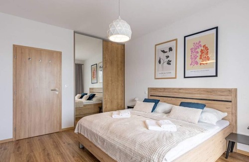 Discover the best of Bratislava from our new apartment, tailored for cycling tourists and sightseers. Situated in the modern Slnečnice district, it offers easy access to both cycling routes and the city center. With 1 bedroom, a cozy living room with a sofa bed, AC, and a balcony with breathtaking views, it's your ideal base. Plus, enjoy hassle-free garage parking. And don't forget, the nearby Slnečnice market provides convenient access to groceries and a diverse food court.