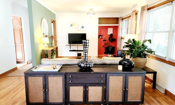 Unwind in this peaceful lakeside retreat, just minutes from downtown Milwaukee. This boho vintage home features a private yard and easy access to Bay View, Third Ward, and MKE airport. Enjoy the serene ambiance of the lakefront while being conveniently located near the city's vibrant restaurants and attractions. Relax in the stylish living area or unwind in the cozy bedrooms. Discover the perfect blend of tranquility and convenience at this urban oasis.