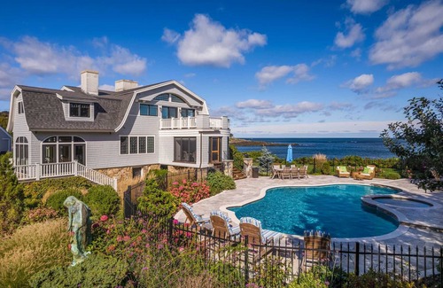 Situated in prestigious Western Point, on Godfreys Cove in York, this magnificent Maine residence presides on over an acre and a half of oceanfront grounds with commanding coastline views. Designed by acclaimed Salmon Falls Architecture and built by YFI Custom Homes, it exemplifies a classic shingle-style design with an atmosphere of old world elegance and charm.