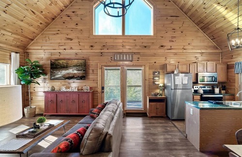As soon as you enter the majestic two-floor cabin, you're welcomed by a very stylish yet highly comfortable open-concept living area. It is designed and furnished with numerous modern and comfy amenities that span throughout the entire interior of this dreamy home.