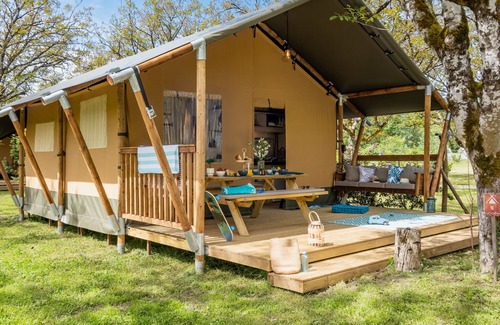• Tentes lodge haut de gamme ombragées par des noyers, dans un quartier 100% piéton