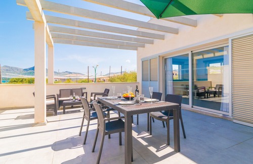 Welcome to this cozy, modernly decorated apartment next to the sea, in Son Serra de Marina. It is prepared for 4 persons + 2 extra.This seafront apartment counts with a 80m2 terrace, with access from the living room, furnished with a chill-out area and two sun loungers. Here, you will be able to relax and enjoy the afternoon sundawn with a sea breeze. The apartment measures 85m2 and is situated on the 1st floor. It counts with 2 bedrooms: 1 with a double bed and 1 with a bunkbed. There is a possibility for 2 extra persons to sleep on the sofa couch, in the living room. On request, there is a baby bed and a highchair available. The modern bathroom is for general use and counts with a spatious shower cabin.The cozy but modern and luminous living- and dining room with kitchenette counts with a sofa, satellite TV and a dining table. Th ekitchenette works with gas and counts with all necessary utensils to prepare a perfect meal during your stay. You will also find a washing machine, an iron and an ironing board.The house is situated in the quiet village of Son Serra de Marina. As there aren't any hotels or traffic, it is a quiet area with a beautiful unspoiled beach, with a rocky beach at 20m from the apartment, and a 1km long fine, sandy beach at only 400m. Specially during the low season you might find some areas with heaps of seagrass, but there is always enough space to enjoy the beach. There are no umbrellas or sunbeds, on this beach. In Son Serra you will find a small supermarket and some nice restaurants.Can Picafort is only 10 km away. There, you will find everything you need during your stay: supermarkets, shops, restaurants, bars and all kinds of leisure activities. Halfway between Son Serra and Can Picafort, you will find the area of Son Real, with its remains of a Phoenician city, its Phoenician necropolis on the beach, and it's information center. It is a worthwhile walk to the beach. You can either reach it by car or following the beach from either side.Pets are not allowed.Contact the advertiser for possible additional costs.The celebration of parties and events is not allowed.DISTANCESBeach: 400m - Son SerraAirport: 58,6km - Palma AirportGolf course: 22,4 km - CapdeperaPueblo: 10,5 km - Can PicafortTrain station: 18,6 km - MuroFerry: 21 km - Port d'AlcúdiaPharmacy: 950m - Son SerraTourist license: ETV/11344 Guests will receive an email 7 days prior to arrival with mandatory general deposit payment information. The deposit is payable by credit card via a secure link within 24 hours after receiving the email. For more details, please contact the office using the information on the reservation confirmation received after booking. The apartment with a size of 85 m2 is ideal for couples with and without children. There are 2 bedrooms available, one with a double bed and the second with two single beds. The apartment has a bathroom with shower. The property is located on the 1st floor and there is no elevator. The 80 m2 terrace is equipped with a small table with chairs made of rattan available. In the open living room you can relax with a good book or just taking a nap on the large sofa. The apartment has no air conditioning, but there are fans available on request. The American kitchen is equipped with everything needed for cooking: microwave, oven, toaster, fridge freezer, coffee maker are also all essential kitchen utensils, crockery and glasses available. The adjacent dining area is furnished with a table and four chairs. There is as well washing machine and an ironing board with iron. The decoration is very modern, well-lighted and is has stunning sea views. Please note that pets are not allowed. Mallorca, the largest island of the Balearic Islands, makes one think of beach resorts, but there are many other ways to enjoy both the coast and the inland - especially in autumn and winter, when the hoards of tourists are gone and the temperature is more suitable for outdoor activities. You can spend a week exploring the Tramuntana mountain range running along the west of Mallorca on foot or by bicycle. Or you can visit some of the wineries in the center of the island where you can enjoy traditional local wines. You can also visit a farm by cycling or hiking, where you can learn how to make the sobrasada or mallorquín pork sausage.Here you'll find great places to eat. The Mallorcan chefs prepare traditional recipes adapted to the modern taste. There are six Michelin-starred restaurants on the island. This renewed enthusiasm for local cuisine is also evident in all the restaurants in Mallorca.Even if you have been on the island several times, there is always more to discover, especially by exploring the lush inland countryside as well as the spectacular coastline.Usually the beach holiday season begins in May and ends in October, but the island is also beautiful in spring when the almond trees are in bloom. Outside the hottest months of July and August, the Balearic Islands are perfect for active holidays, with plenty to see if you are interested in plants or birds, or if you want to discover the local culture.While most beach resorts close in the winter months, Mallorca is an ideal location for a holiday year-round. If you want more to do than to just lie on the beach, take advantage of the low winter prices and enjoy the taste of a real life in the Balearic Islands. Check-in schedule: everyday from 16:00 to 20:00Check-out schedule: 10:00 Reference: BN1001795