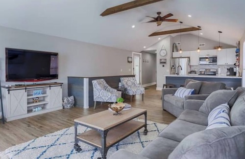 This spacious four-bedroom, two-bathroom home offers over 2,000 square feet of living space and sleeps up to ten. The interior is bright and welcoming, with large picture windows that flood the rooms with natural light and provide stunning views of the lake.