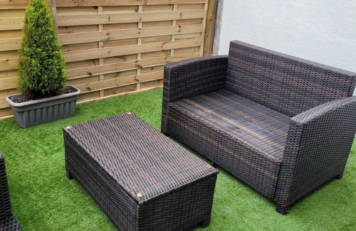 Spread over two floors our newly exceptional high standard renovated apartment sleeps up to 2 guests and not to forget their furry companions. The lower floor has a large double bedroom with a slipper bath and wash basin with French doors opening to a private garden area. The upper level has an open planned fully fitted kitchen, living and dining experience with a sofa