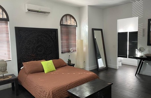 Comfort and Style were our guiding principles when designing this Unit. Kick back in the custom Balinese furniture while enjoying our complimentary high speed internet or our Smart TVs . Wanna stay in? You will have a well appointed kitchenette with pots, pans, stove and microwave. Want to splurge? We are a few steps away from some of the best food in Miami, from the Amazing Blue Collar to the fan favorite Boia De, you will be in the Heart of it All! Just get here we will take care of the rest.